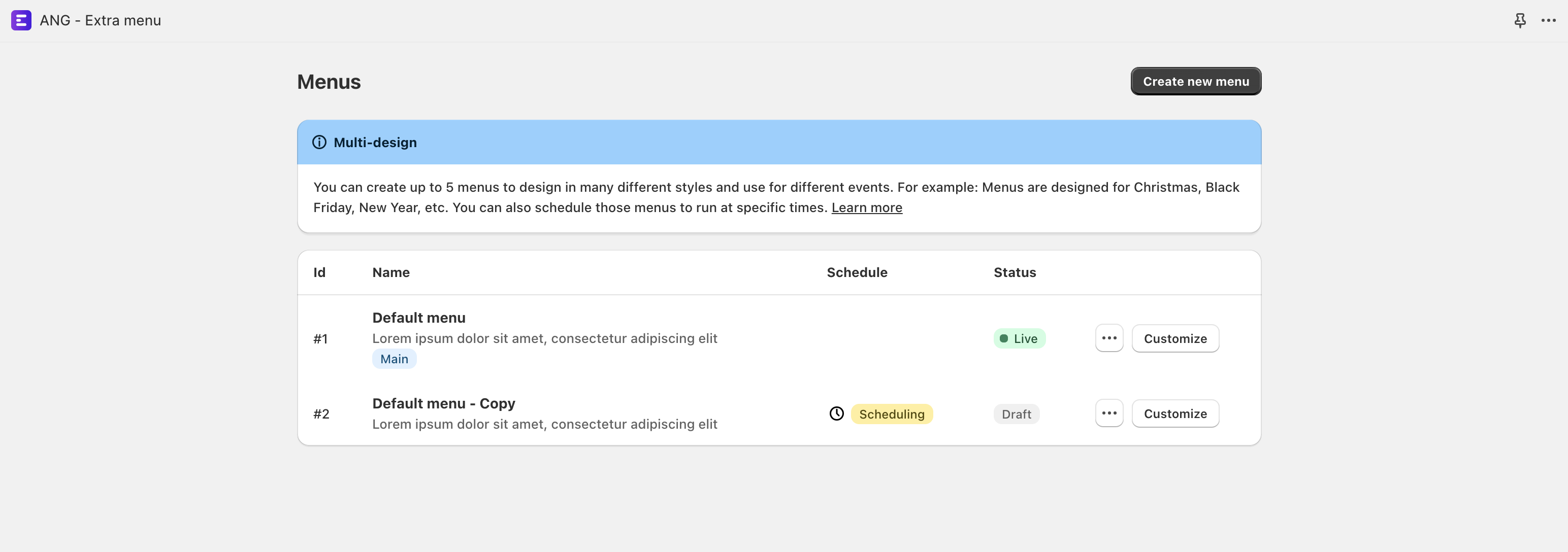 ### 1. **Duplicate the menu and customize it to suit upcoming events.**